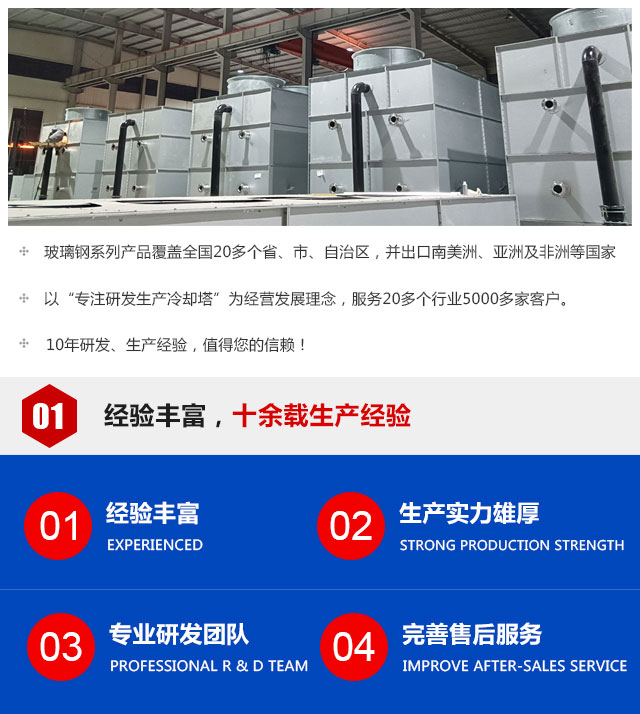 本公司主要产品有:闭式冷却塔、玻璃钢冷却塔系列、玻璃钢罐槽系列、塔器与异型设备、玻璃钢管道系列、玻璃钢水箱系列、玻璃钢风机系列、玻璃钢罩壳系列...